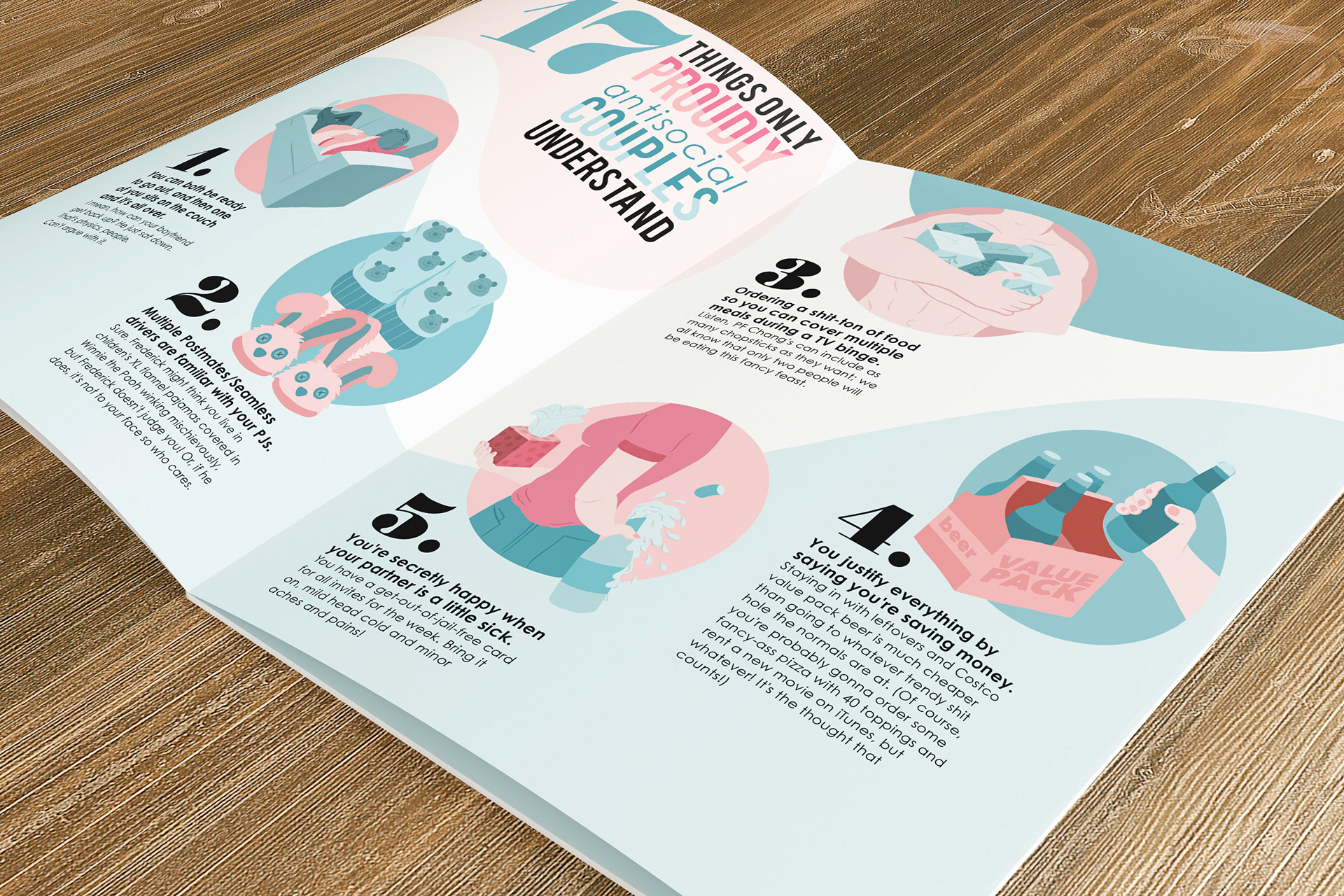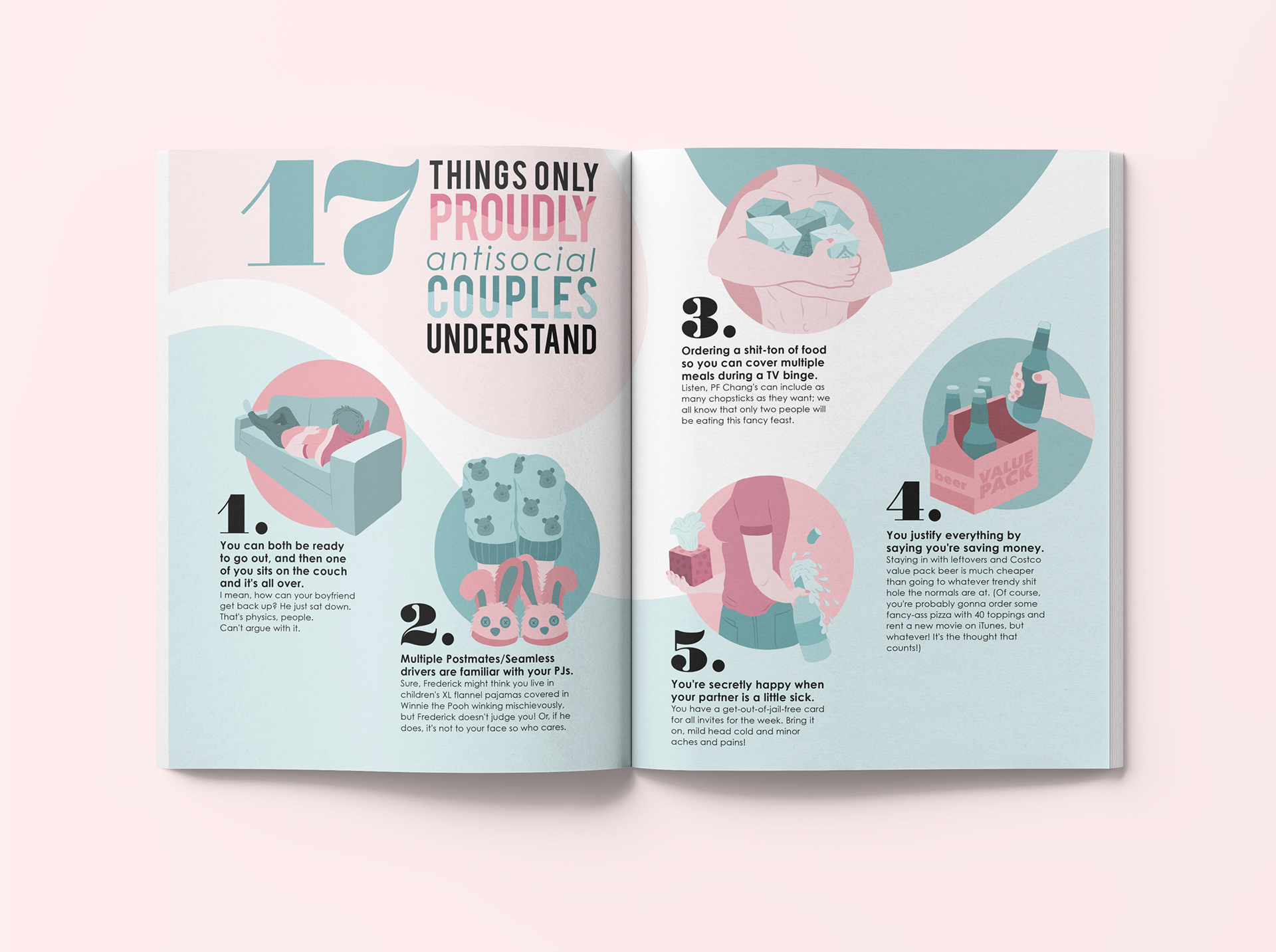 A fun + playful editorial magazine spread designed for Cosmopolitan Magazine using bold colors and funky shapes.